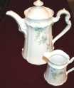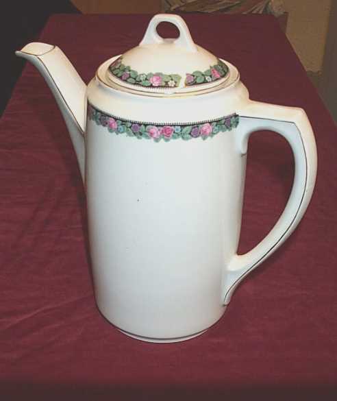 Art Deco KaffeekanneSchlichte Form m. Rosenbordüre und Goldrand. Höhe ca. 26 cm.
