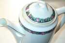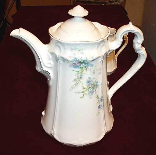 Große Kaffeekanne m. MilchgießerToll verziert. Blaues Blumenmuster. Höhe ca. 26 cm.
