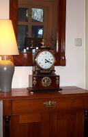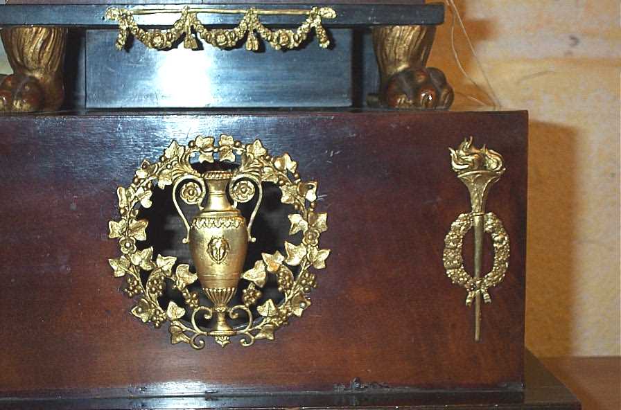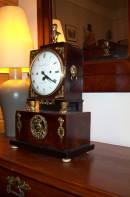 Pendule um 1810.Sehr schöne, prunkvolle Uhr. Mahagonie furniert mit Feuervergoldeten Verzierungen.Sehr frühes Biedermeier bzw. Empire