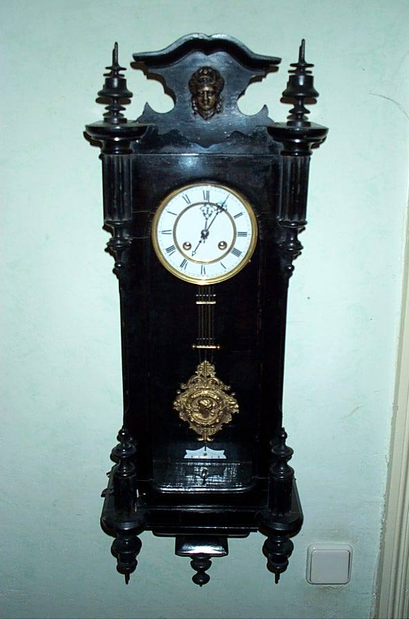 Regulator aus der Zeit Louis Philippe um 1860.Schwarz mit Messing Prunkpendel. Werk von Gustav Becker.