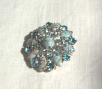 Prunkvolle Brosche reichhaltig besetzt mit Türkis / Opalen sowie blauen und weißen Strasssteinen.