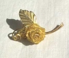 Filligrane Brosche, goldfarben. Rosenblüte mit Blatt