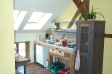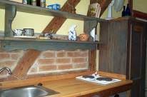 Im Zuge vom Ausbau unserer Ferienwohnung entstand diese gemütliche Küche, bei der alte Bauelemente sowie vorhandenes Mauerwerk liebevoll in Szene gesetzt wurden.