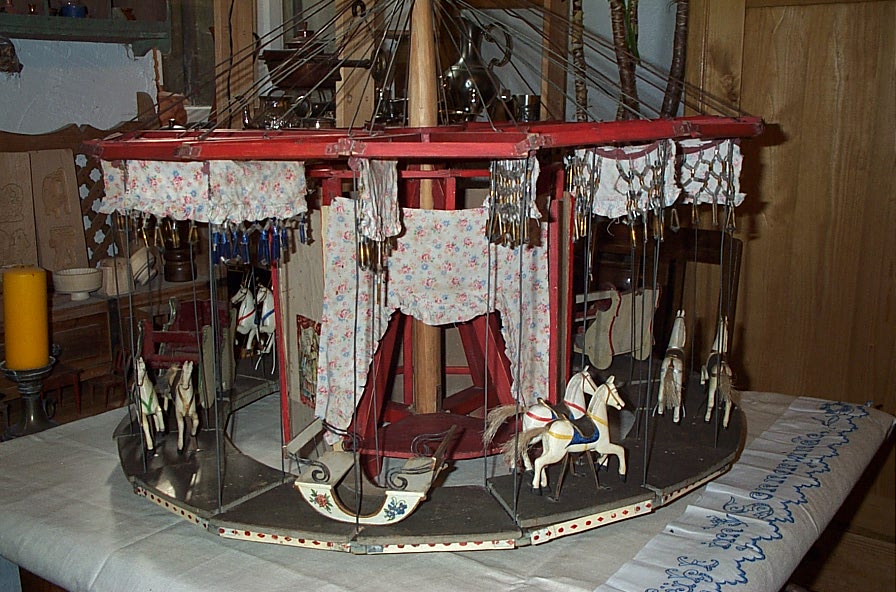 Außergewöhnliches Model eines Kinderkarussell.Liebevolle Handarbeit, gebaut um 1900. Durchmesser ca. 80 cm .