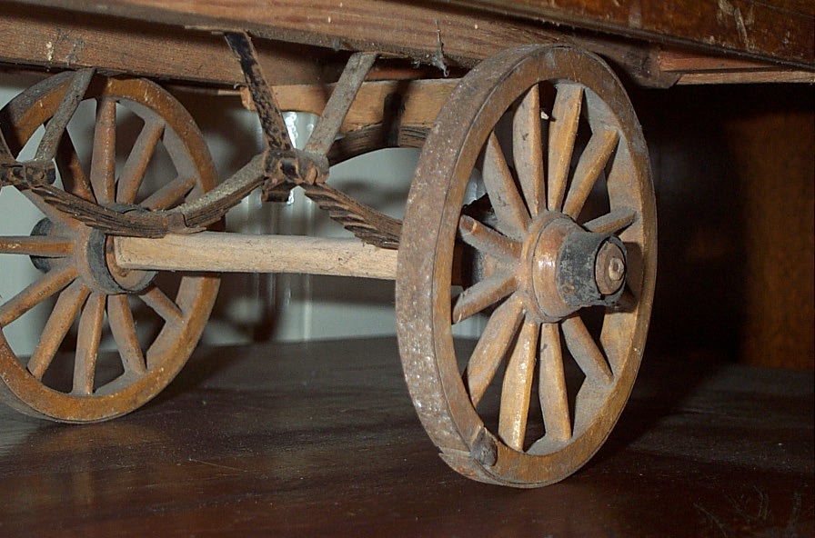 Schaustellerwagen ca. 1900. Alles Handarbeit mit aufwendigen Details wie Blattfedern, Radnaben, Türen zum öffnen...